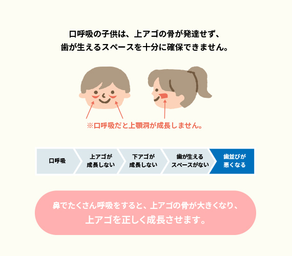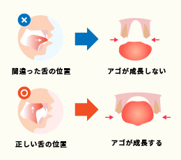 正しい舌の位置にすることで、アゴや歯の成長を助ける役割もあります。