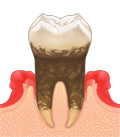 歯周病は歯周病原細菌が原因の感染症ですので、細菌の温床である歯石・歯垢の除去、病巣を取り除くことで症状を抑えることが出来ます。しかし、歯周組織が破壊されてしまうほど進行すると、それを完全に再生することは難しくなってしまいます。そのため、