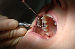 スケーラーと呼ばれる器具で歯石を除去します。歯石は歯磨きでは取れないほど硬い組織であるため、この器具を用いて定期的に除去する必要があります。歯石は歯垢がくっつきやすく、細菌の温床となるため、歯周病治療の際には除去が必須となります。